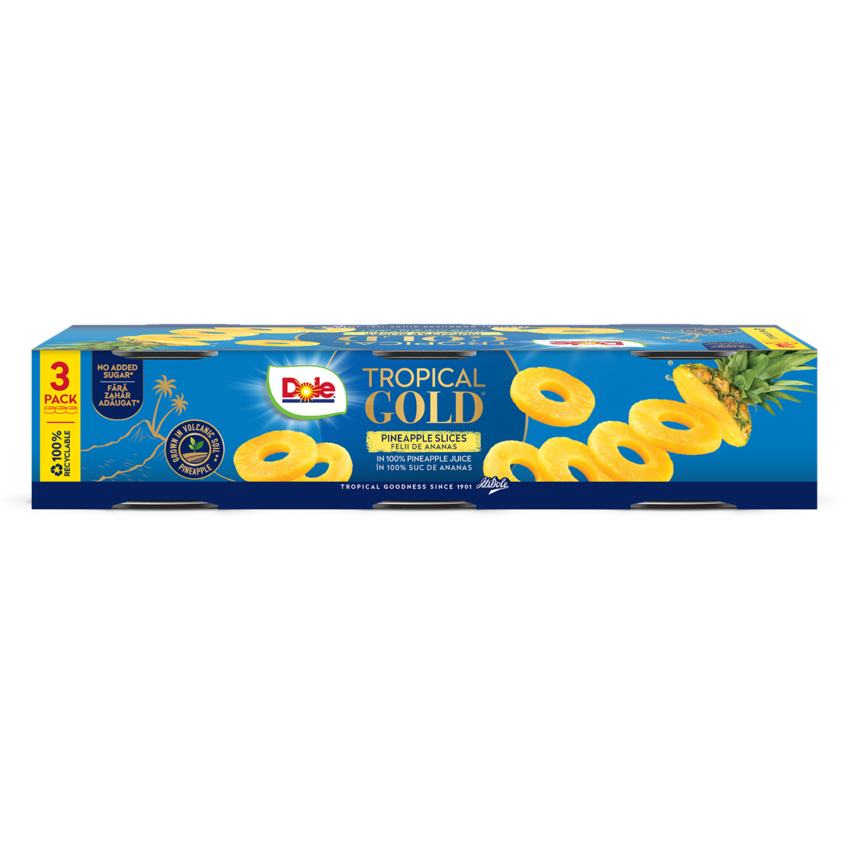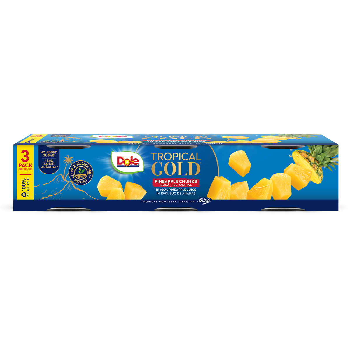 BUCATI DE ANANAS IN SUC TROPICAL GOLD DOLE 3X227G